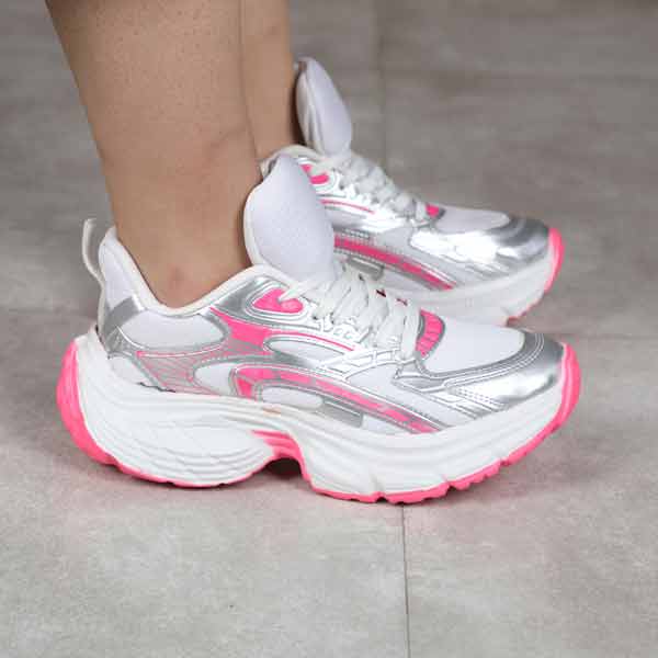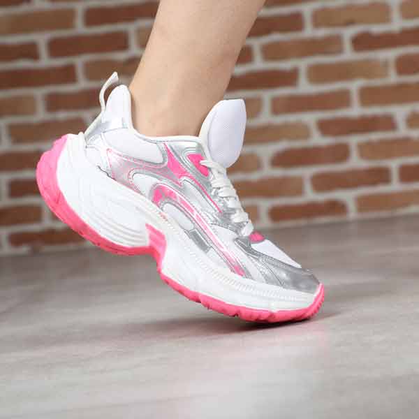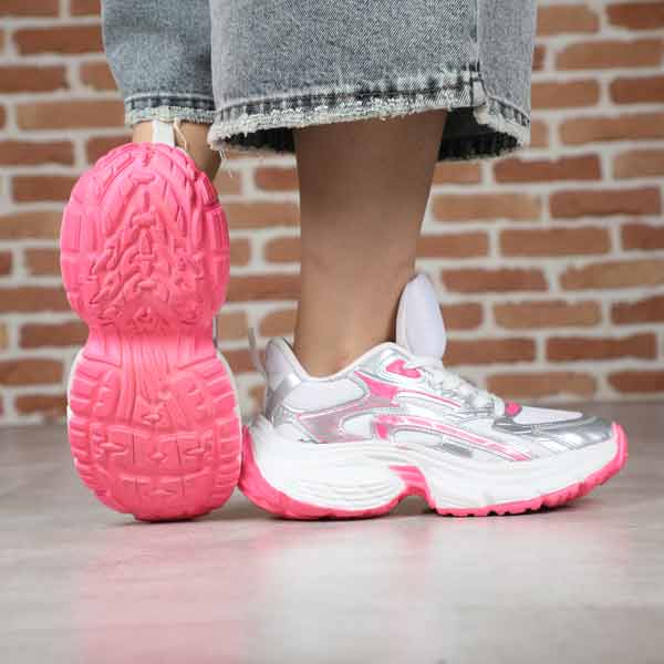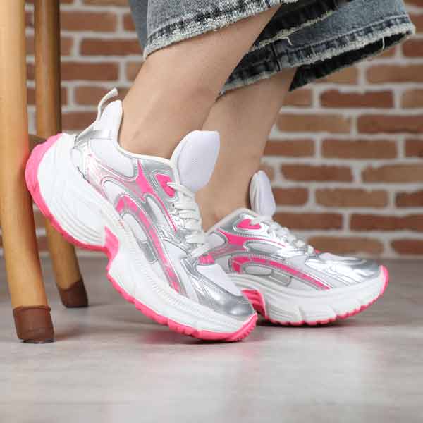 کتونی اسپرت لژدار سفید صورتی نقره ای sina